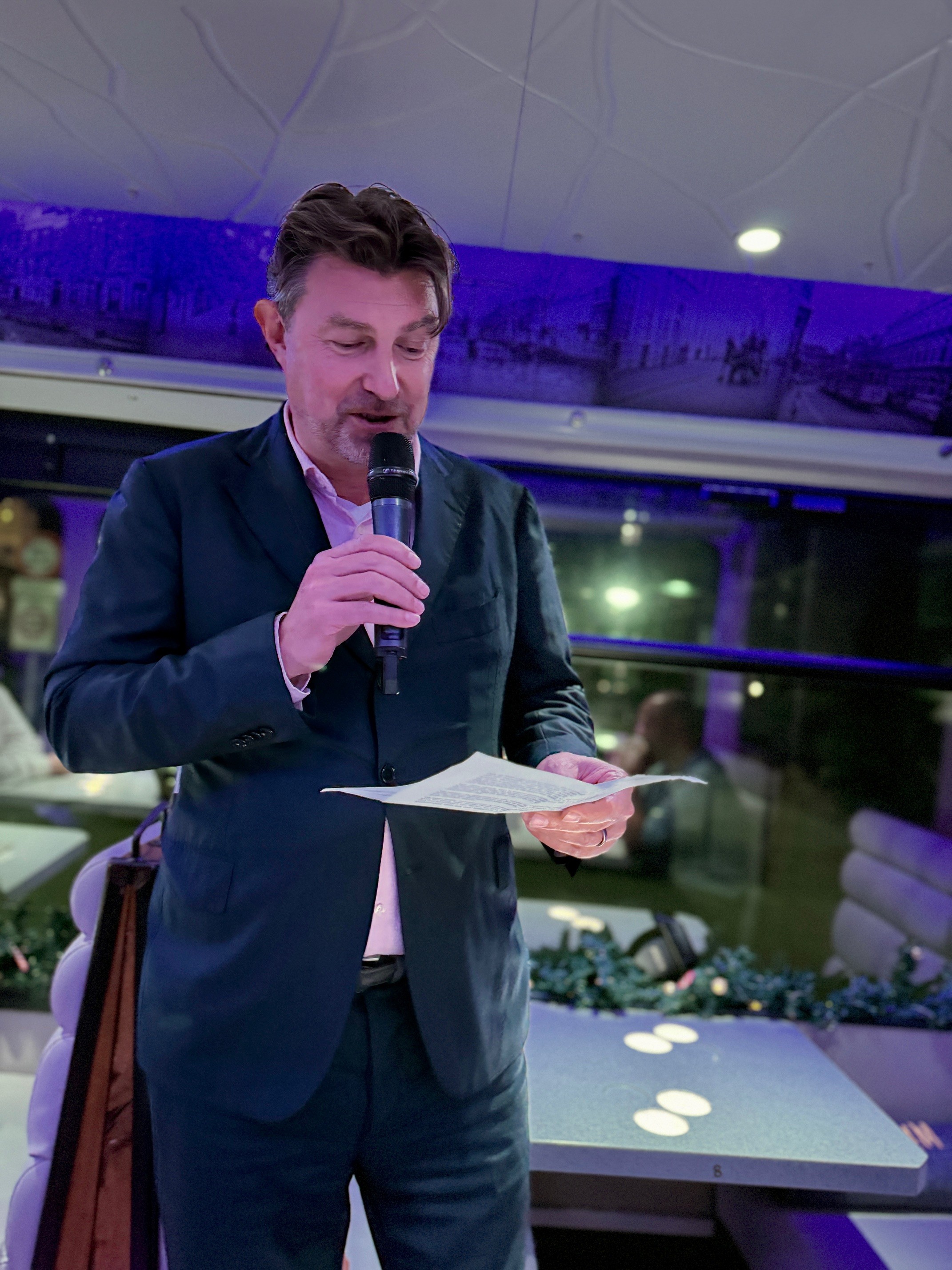 Het diner was een van de hoogtepunten van de avond. Terwijl de tram zachtjes door de stad reed, werden de gasten verwend met een viergangenmenu, samengesteld door chefkok Pierre Wind. Elk gerecht was een kunstwerk op zich, met lokale ingrediënten en een feestelijke twist. Van een heerlijke Rouleau van Gamba als voorgerecht tot een smaakvolle eendenborst als hoofdgerecht, de culinaire ervaring liet niets te wensen over. Uiteraard werd alles begeleid door bijpassende wijnen en heerlijke kerstdrankjes.