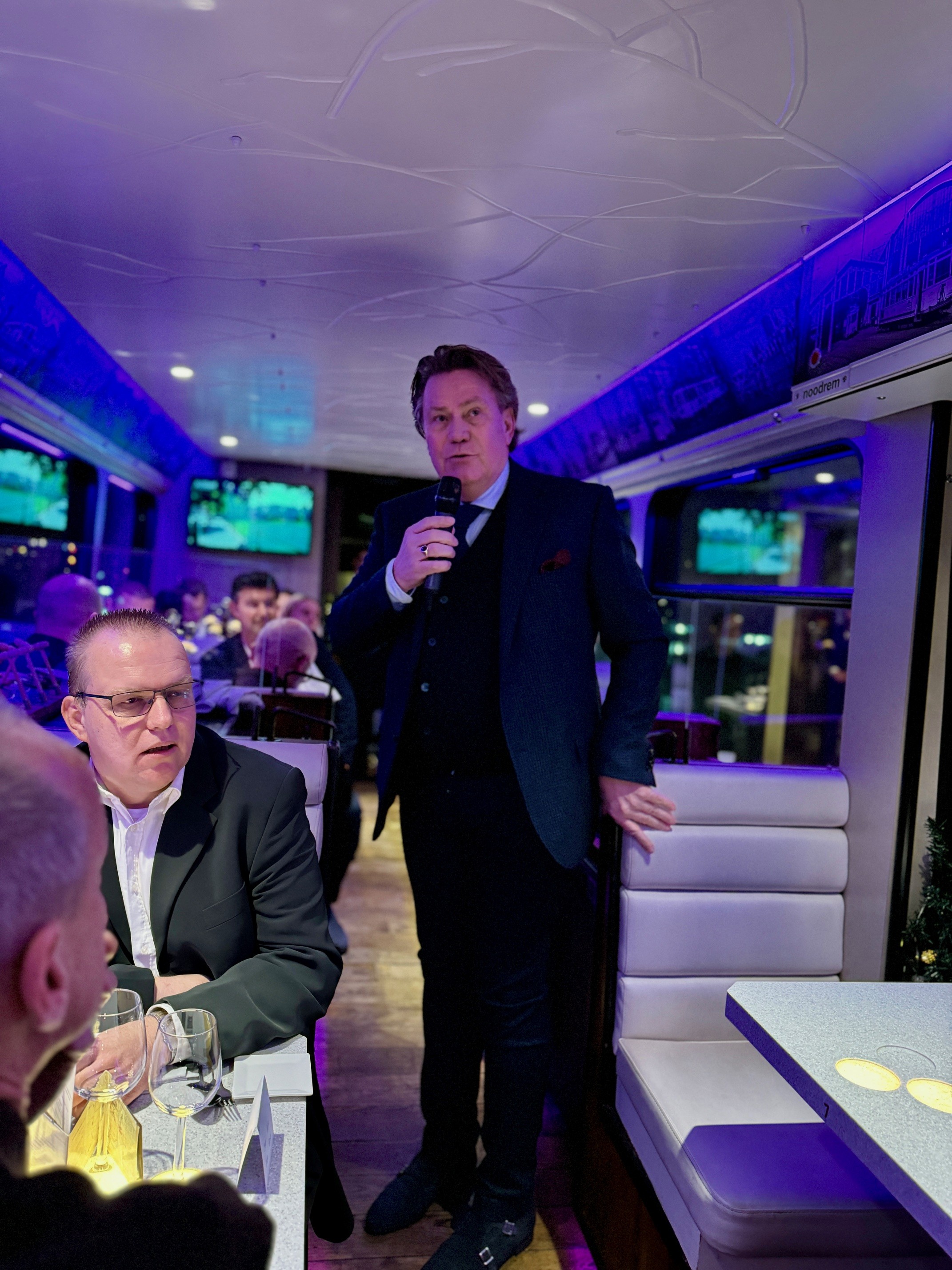 Na een korte toespraak van de directie, waarin werd teruggeblikt op een succesvol jaar vol samenwerking en groei, begon de tram aan haar rit door het prachtige Den Haag.